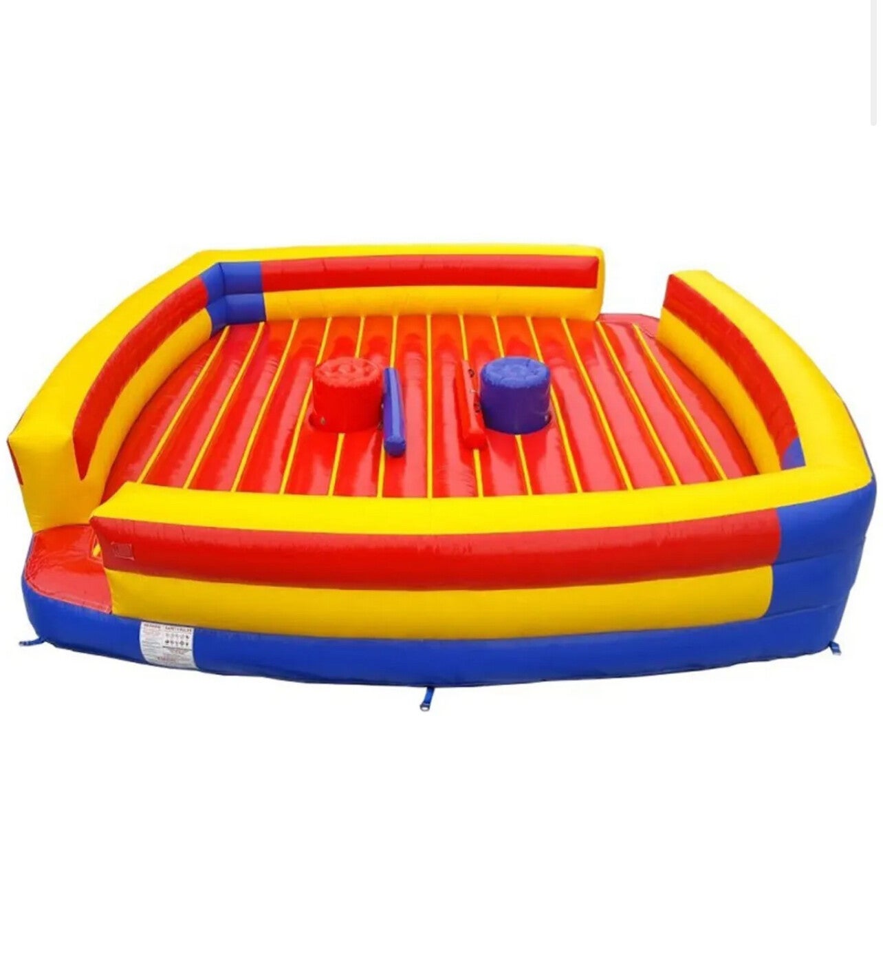 Two participants can step up to this interactive inflatable game, but only one can walk out as a Gladiator Champion to cheers from the crowd. Our Commercial Jousting Arena is one of the coolest interactive games that we offer and your customers will certainly agree. Each participant stands on their own pedestal, equipped with an air joust pole and battle each other to see who can stay on their pedestal without falling off. It's the perfect inflatable for a little friendly competition at most any event you could possibly imagine, from summer BBQs, to birthday parties, to carnivals and fairgrounds. This head-turning inflatable is ready to provide hours of fun, laughs and friendly battles.